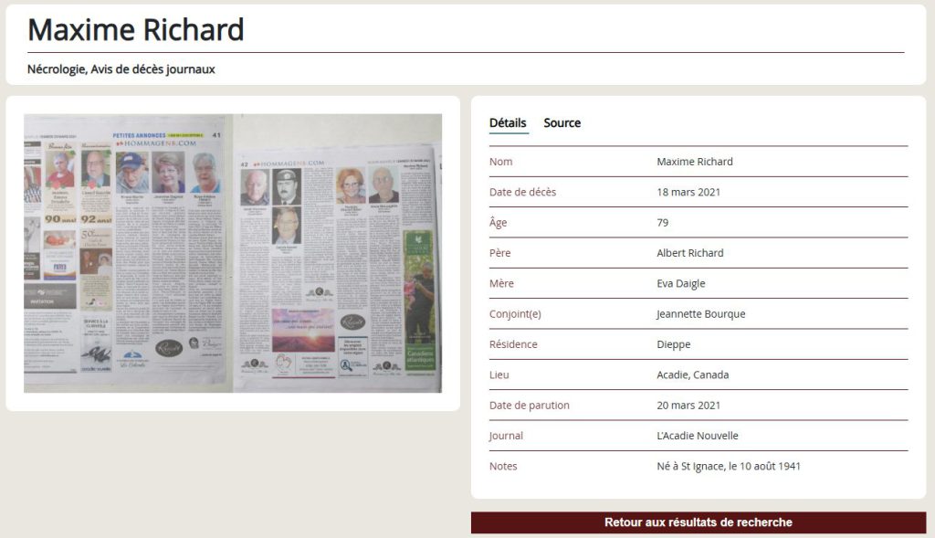 - Disponibles via le moteur de recherche dans la collection Avis de décès journaux