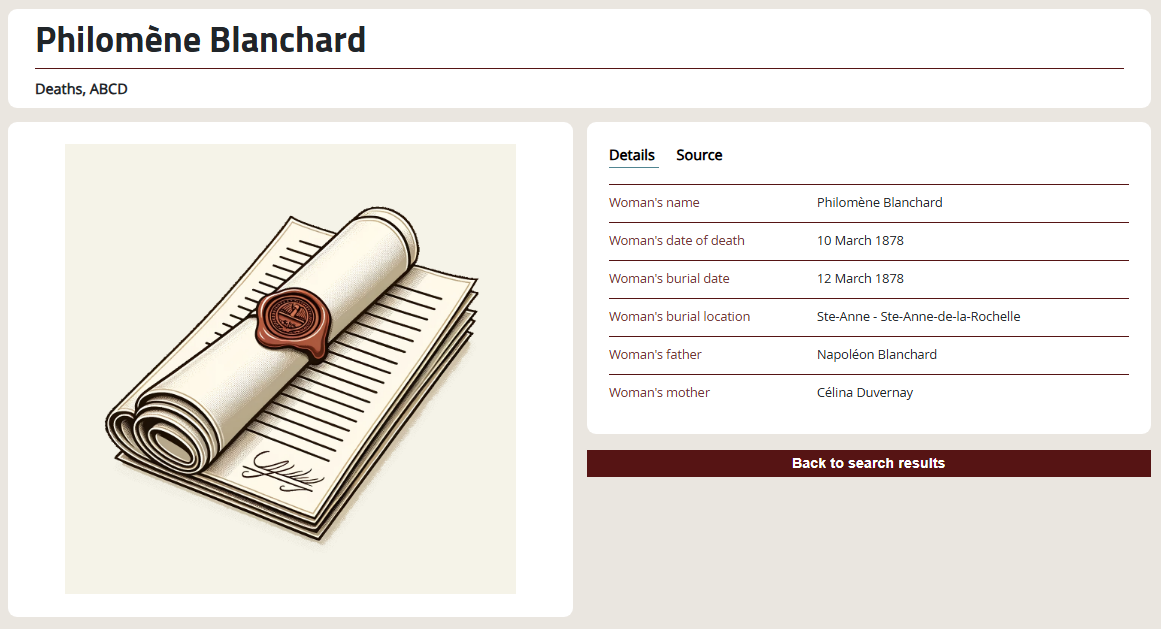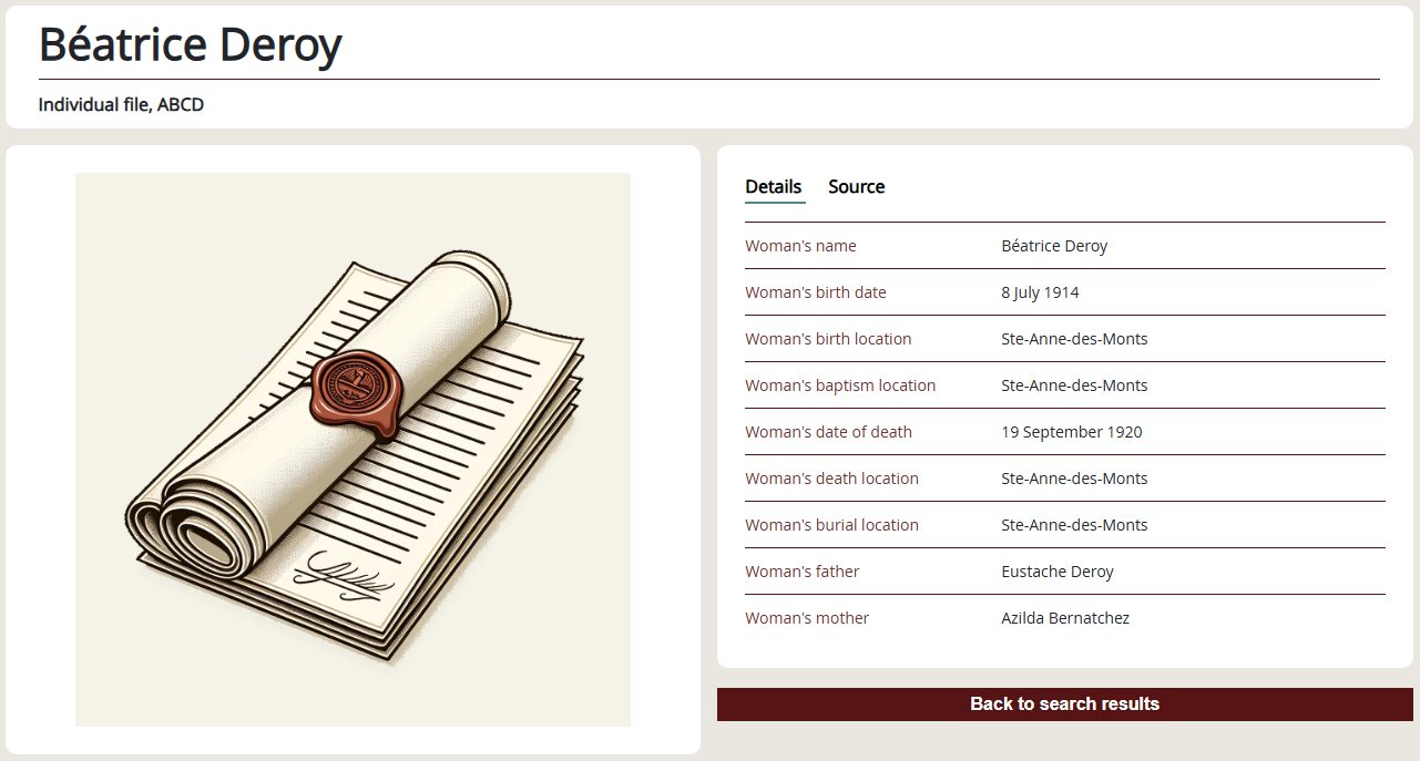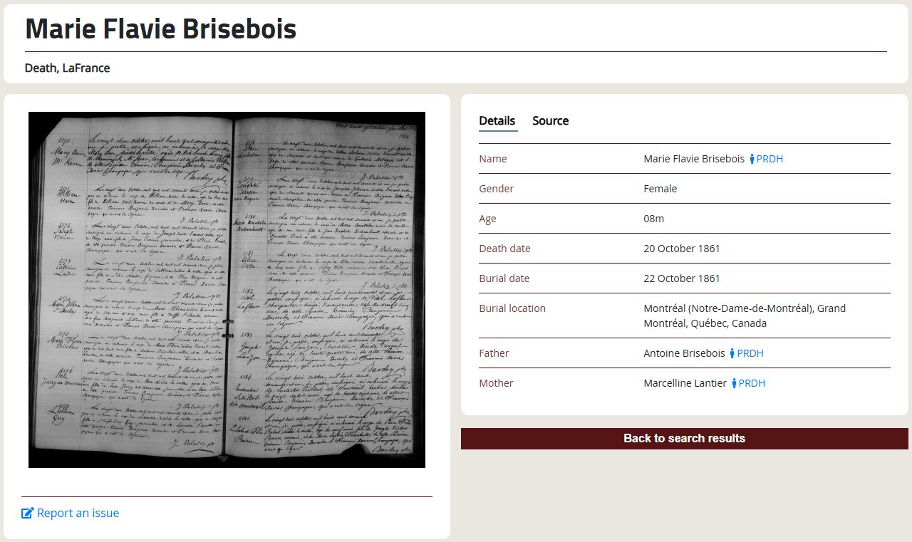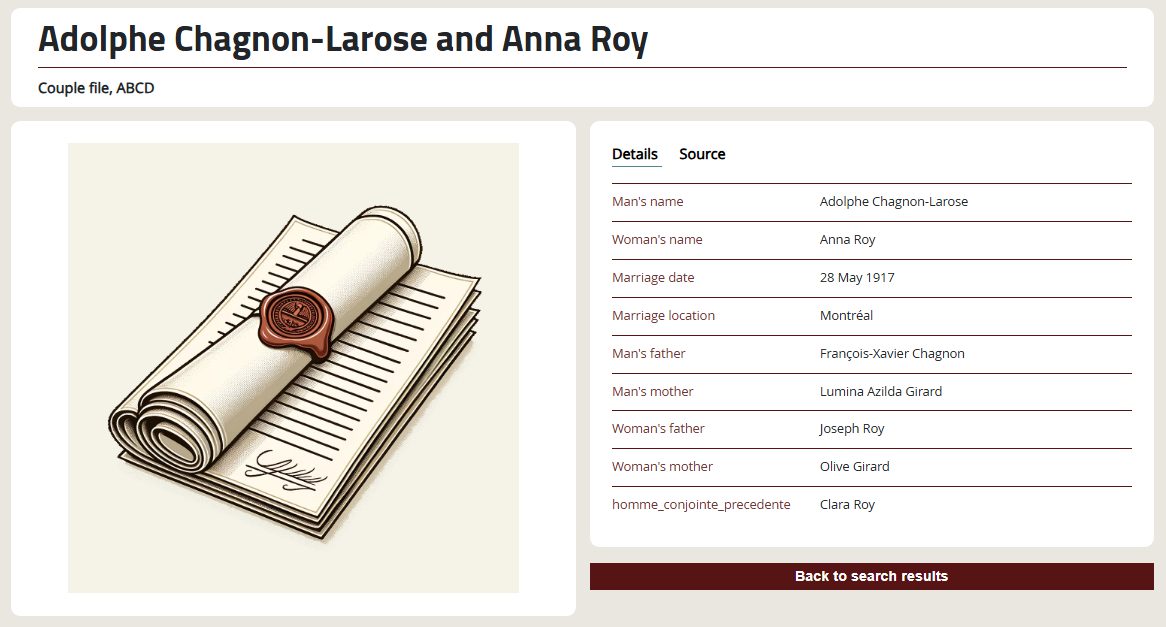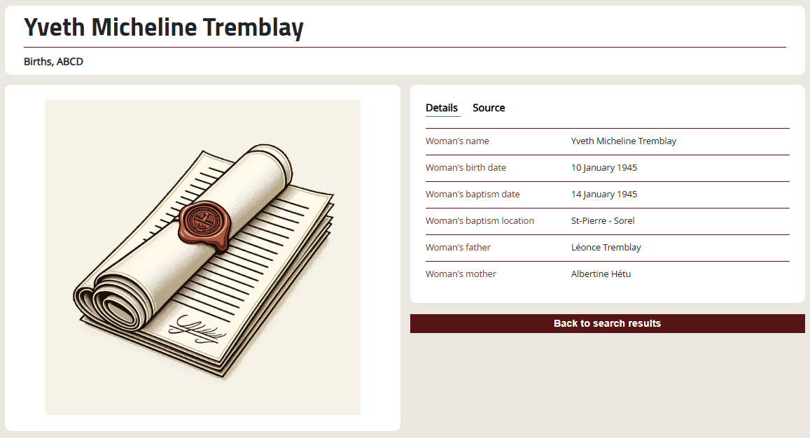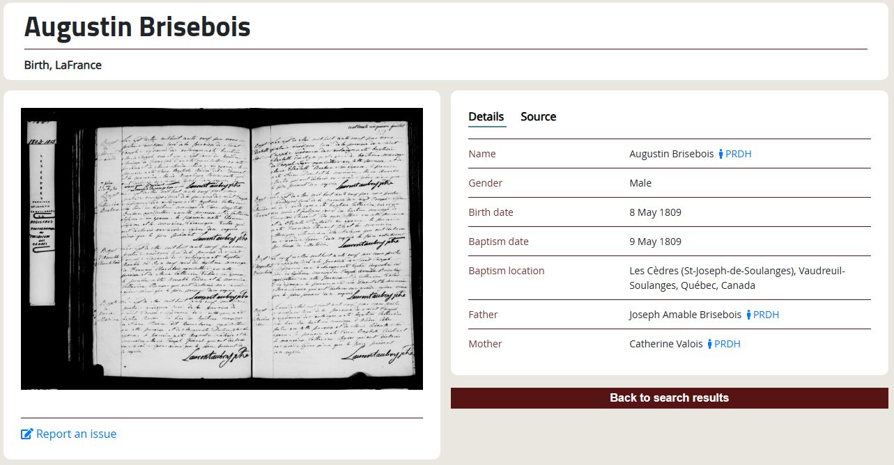 Genealogy Quebec’s new search engine has the advantage of searching through all the site’s databases. As a result, events may sometimes be listed in several databases, or even several times in the same database. This is generally an advantage, since it’s not uncommon for one source to contain information not present in the others. But what if two sources contradict each other?