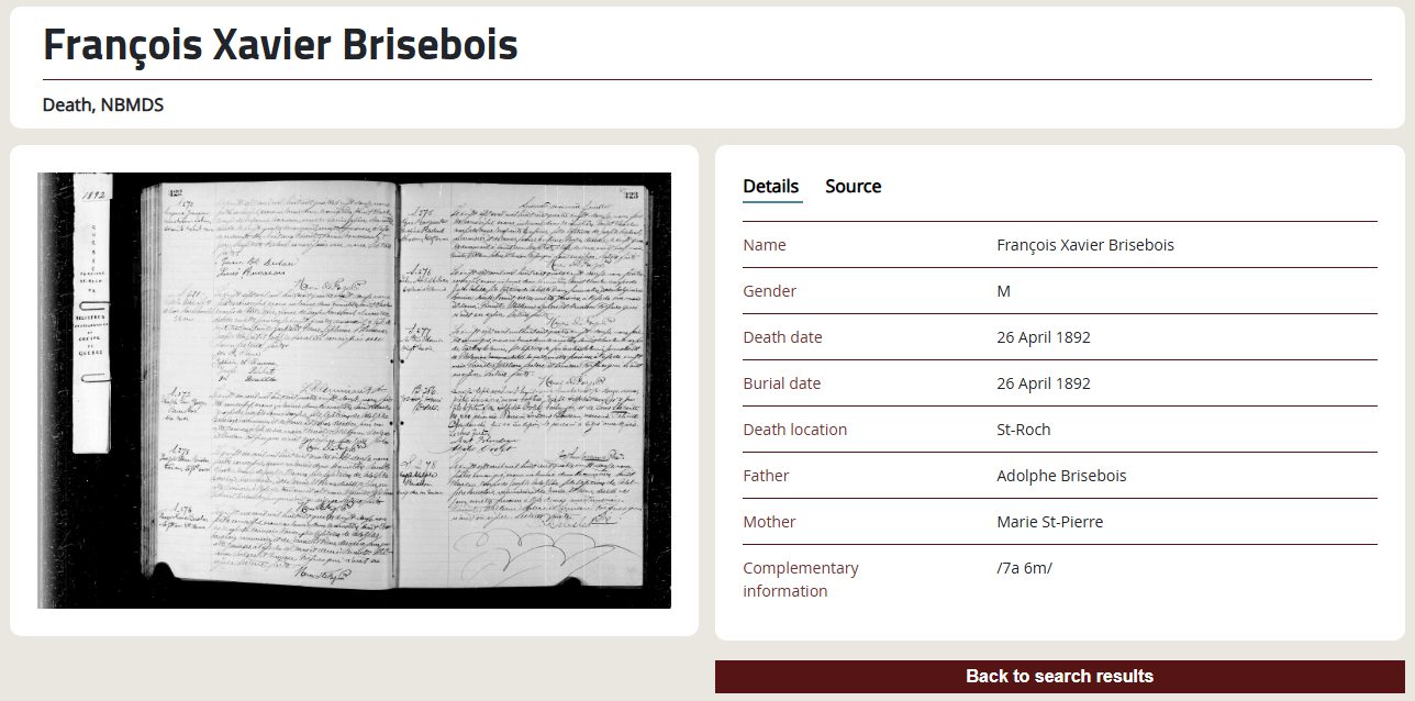 The NBMDS collection contains millions of births, marriages and deaths from a variety of sources, mainly parish and civil registers. These documents cover mainly Quebec, but also parts of the rest of Canada and the United States. The source document is sometimes available.