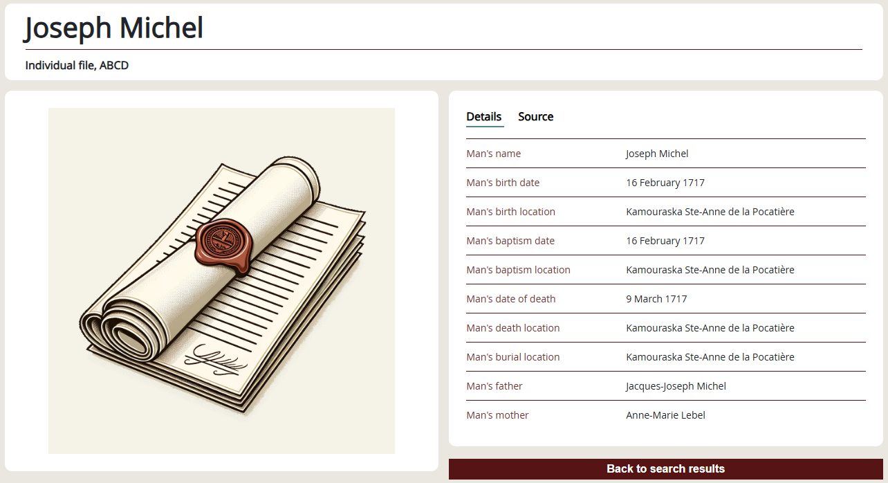 Genealogy Quebec’s current research tools and databases will remain available to our members for the long term. However, they will no longer be updated once the new search engine has been fully released.