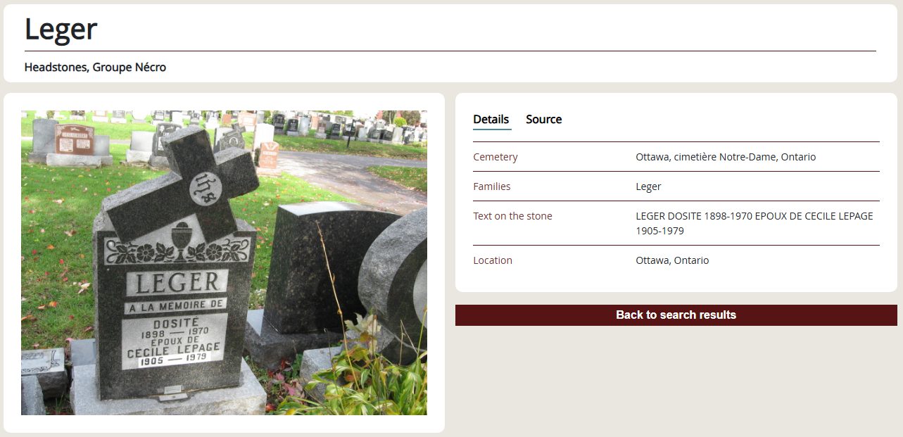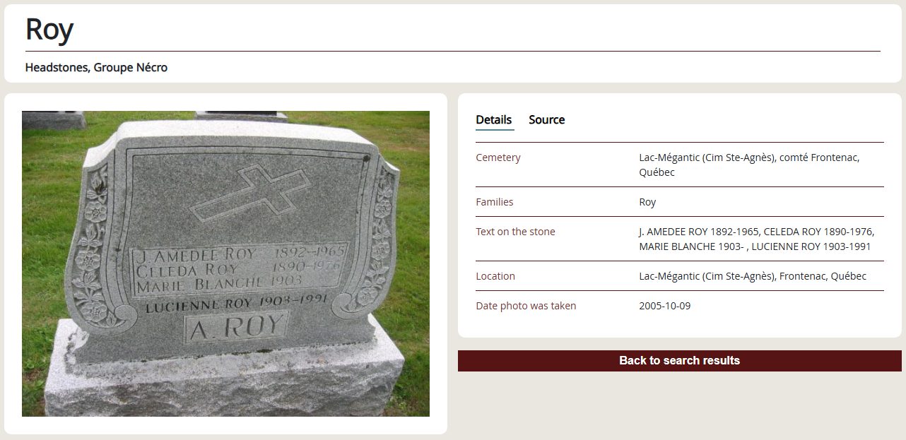 This collection contains indexed tombstone photos from over 830 cemeteries in Quebec and Ontario. A photo of the tombstone is available in all cases.