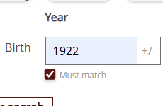 The engine performs a calculation based on the year of birth to show you results relevant to your search. If you enter a date other than the approximate year of birth, many relevant records will be excluded from the search results.