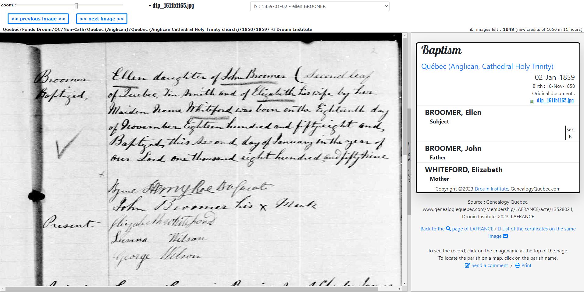 | Îles-de-la-Madeleine (Protestants) | 1858-1928 |